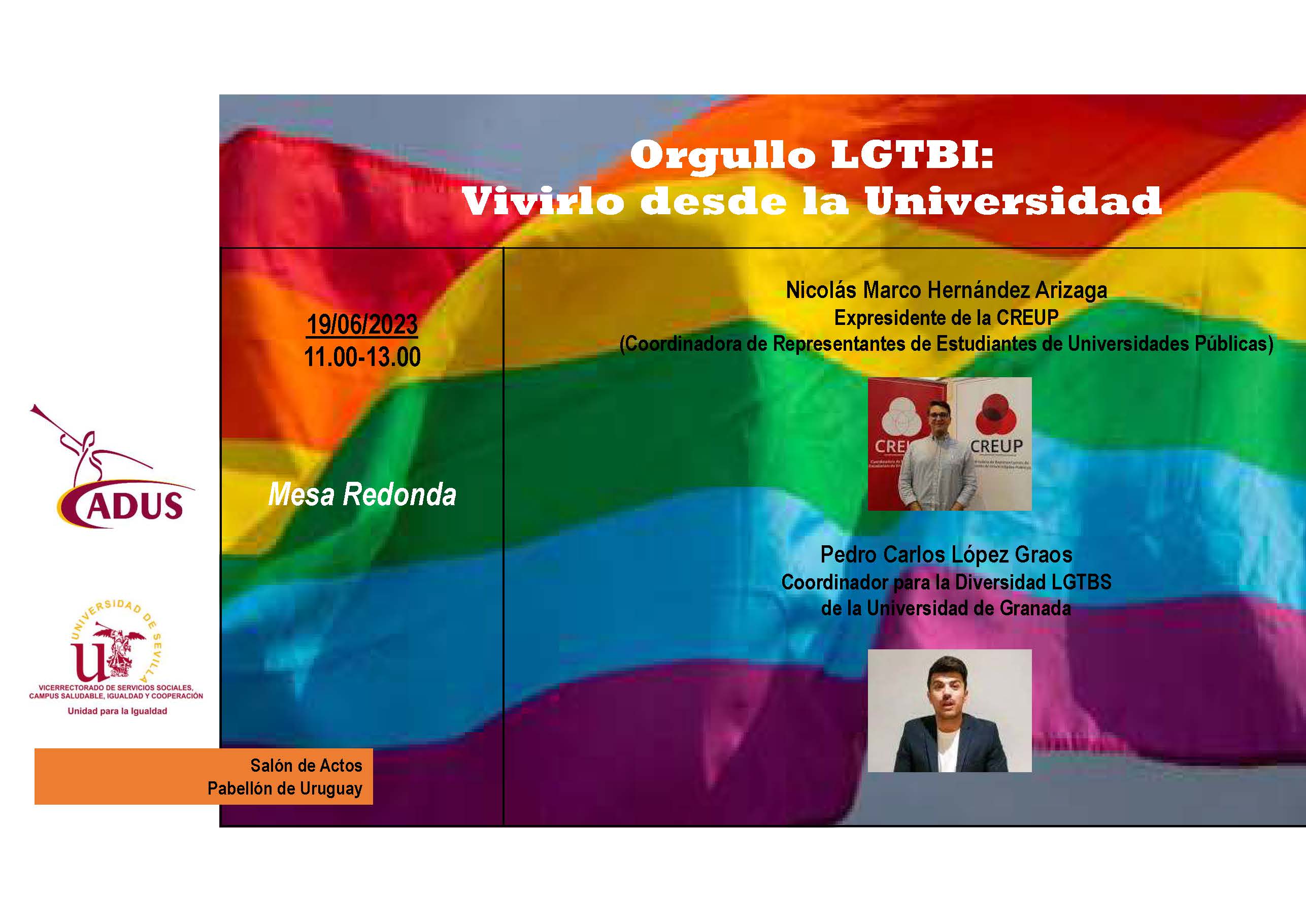 El próximo día 19 de junio de 11:00 a 13:00 horas en el Salón de Actos del Pabellón de Uruguay, tendrá lugar la Mesa redonda Orgullo LGTBI: Vivirlo desde la Universidad.